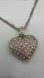 Elegant silver heart pendant necklace with intricate detailing and encrusted with faux diamond rhinestones.