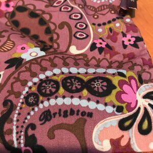 Brighton Jewelry Pouch; Purple w/Black, Mauve, Pink & Blue Paisley; Drawstring Close; Purple Logo Ribbon Drawstring; 4.5" x 6"
