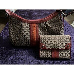 Brighton Purse Matching Wallet Joanna Red Brown Heart Logo Purse Mini Handbag