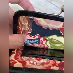 Brighton Purse Small Black Patent Leather Flower Floral Lining