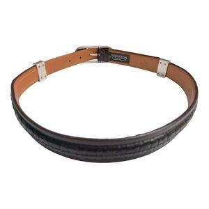 'Brighton' Q4308 Brown Leather Belt Oval Silver Tone Buckle Size S 28
