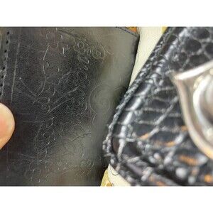 Brighton Raffia Straw Woven Tote Shoulder Bag Black/Tan Double Handle Vintage