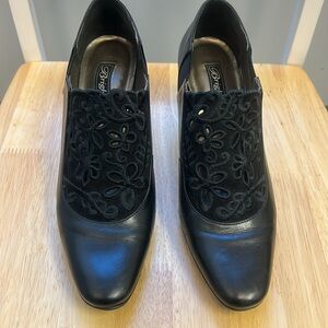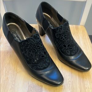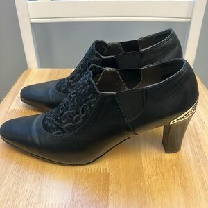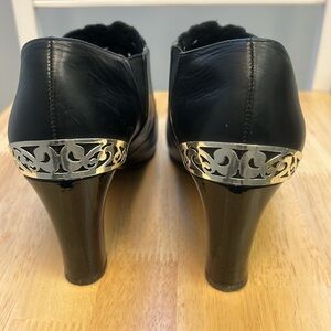 Brighton Rand Black Leather Booties Silver Scroll Metal Heel Embellishment