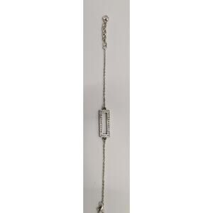 This elegant Brighton bracelet features a delicate silver tone chain with an adjustable length to fit various wrist sizes comfortably. The centerpiece is a rectangular charm embellished with sparkling clear crystals, adding a touch of sophistication and shimmer to your ensemble. The charm's intricate engraved pattern on the back showcases the brand's attention to detail and craftsmanship.