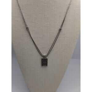 Brighton Rectangular Scroll Pendant Necklace 18 Inch Silver Tone