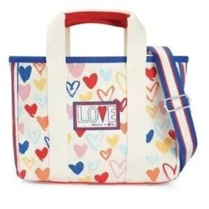 Brighton red, white, & you canvas heart tote.