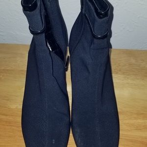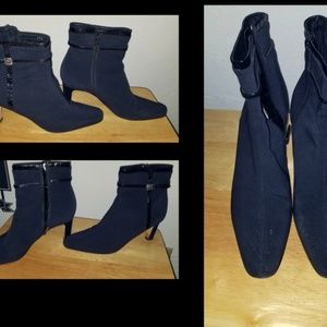 Brighton #176 Regina black fabric ankle boot in a size 8 Narrow. Made in Italy.