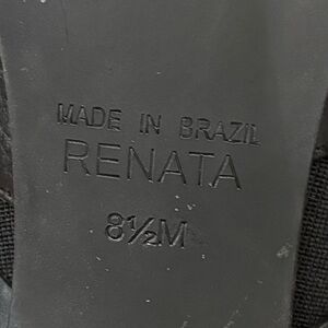 The Brighton Renata Leather Slip On Heels in size 8.5 feature a stylish studded belt buckle detail, adding a touch of edgy sophistication to any outfit. Crafted from black leather with a block heel style, these slip-on heels are perfect for summer, fall, and spring seasons. Made in Italy, these designer heels offer both comfort and fashion-forward style, ideal for women looking to make a statement with their footwear.