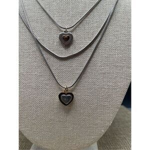 Brighton Rendezvous Triple Strand Heart Two Tone Necklace 18"