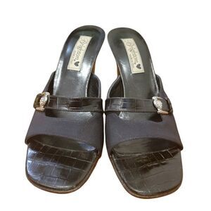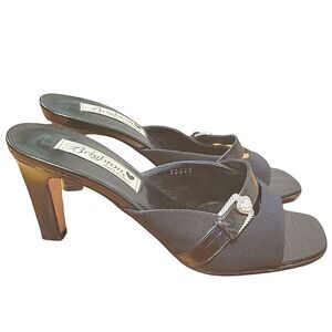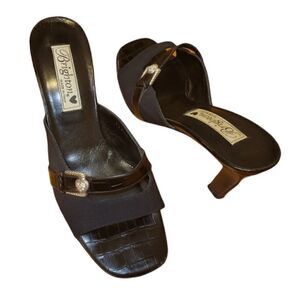 Brighton Renee Black Leather Slip On Peep Toe Open Back Heel Shoe 8.5M