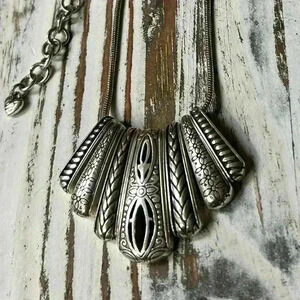This beautiful statement necklace or bib necklace is the perfect piece to bring a classic black blouse to the next level. Great for office or for a night out. Classic Brighton with the quality you expect. The graduated pendants are separate so they move as you do brining even more depth to this piece. Ready to ship!