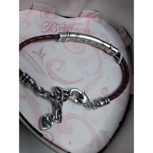 Brighton Retired Glastonbury Bar Dark Red Leather Bracelet free ship gift NEW!