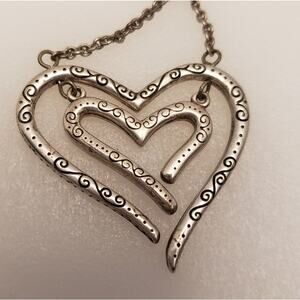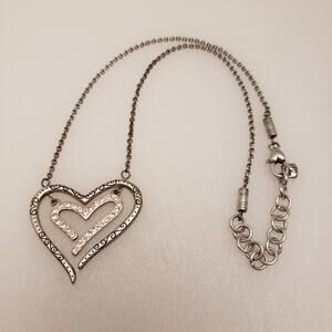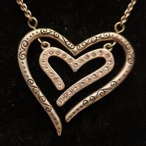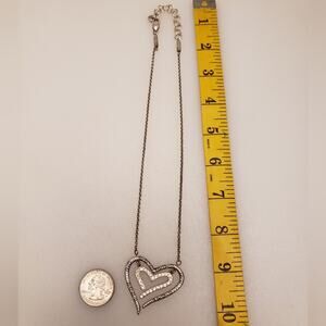 Brighton Reversible Silver Double Heart Crystal Pendant on Link Chain Necklaceee