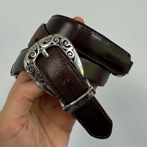 Brighton Reversible Brown Leather Belt Patent Snake Embossed Silver Hardware S