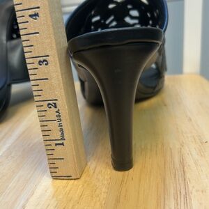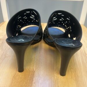 Brighton Revue Catch The Moon Black Leather Slip-On High Heel Sandals