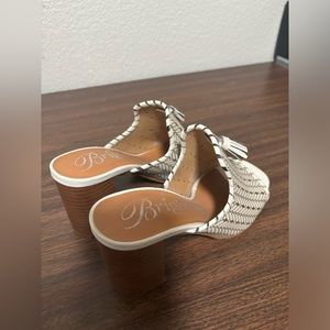 It's easy to fall in love with these luxe sandals inspired by the laid-back lifestyle of Santorini. Whipstich lacing around their perimeters echoes the die cut and laser-etched leather. We love the tassel and block heel.