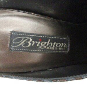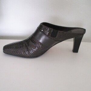 Brighton "Rhyme" Womens Italian Patent Faux Snake Leather Slide w/3" Heel. Size 7.5M. Made in Italy. Previously owned but barely used, leather uppers are pristine, as are the rubber logo soles, while only the heels reveal minimal wear. Includes the original box.