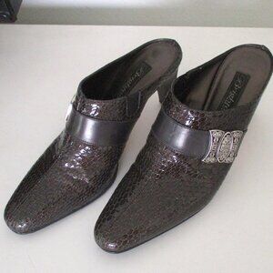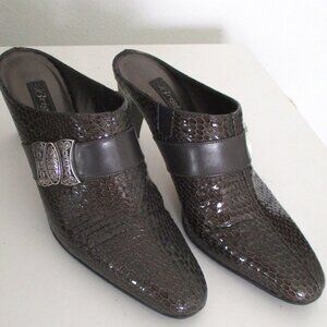 Brighton "Rhyme" Womens Italian Patent Faux Snake Leather Slide w/3" Heel - 7.5M