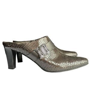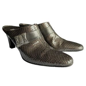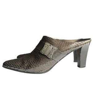 Brighton Rhyme Snakeskin Embossed Heeled Leather Mule Size 8.5 N