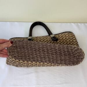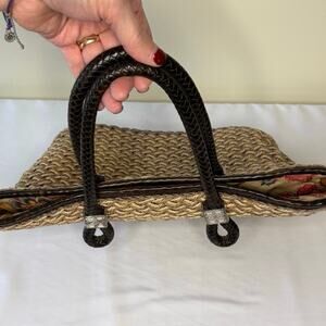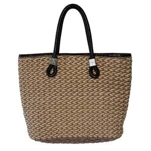Brighton Rita Woven Jute Tote Bag Tricolor Straw Leather Handles Silver Charms