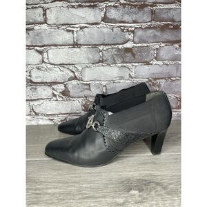 Brighton Rizzo Black Leather Silver Elastic Heel Ankle Booties Women 10M US/41EU