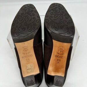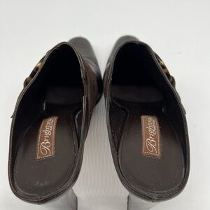 Brighton Rococo Made in Italy Dark Brown Leather Belted Mules Slip On Heels 8.5