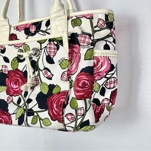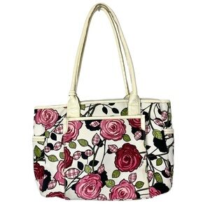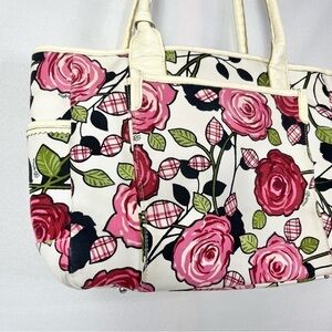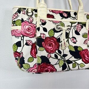 Brighton Roses Perkins Canvas & Leather Shoulder Bag