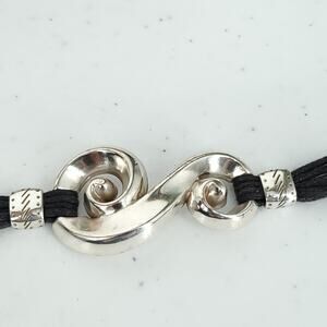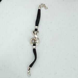 Brighton Rotolo Scroll Bracelet Black Cord Silver Plated Retired