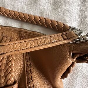 Brighton Ryder Tan Woven Womens Hobo Bag Leather Braided Silver Heart Charm Zip