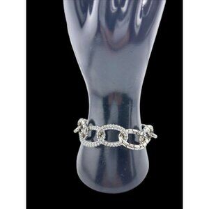 Brighton SILVER TONE TEXTURED CHAIN CRYSTAL 9" BRACELET BALL CHARM