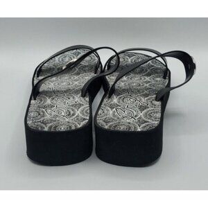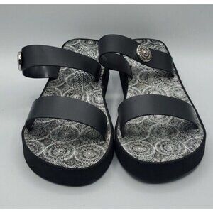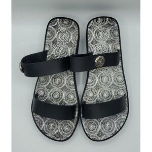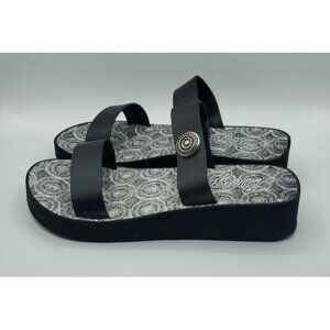 Brighton Sandals Size 10 Leather Black Medallion Wedge Cushioned Slip On