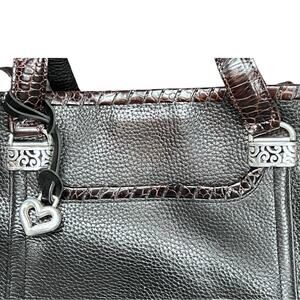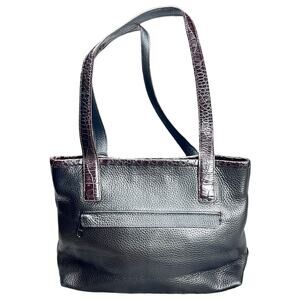 Brighton Black pebble grain leather with Brown Crocodile embossed trim Satchel, shoulder bag. Beautiful, clean floral lining.