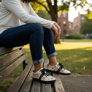 Brighton Scoop Leather Travel Print Sneakers Women’s 9M Made in Brazil