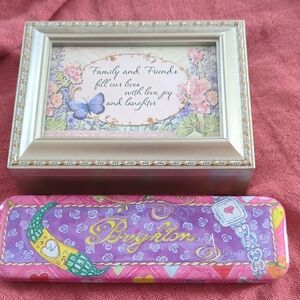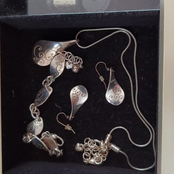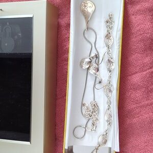 Brighton necklace, bracelet, earrings set ,tin and special wind up jewelry box that plays "that's what friends are for"
