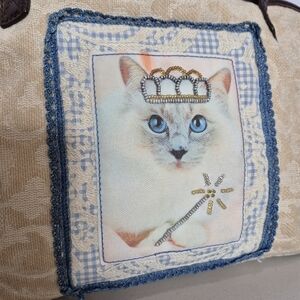 Attention Cat Lovers! Rare and vintage Brighton Sheba cat tapestry tote bag featuring a diva feline with blue eyes and crown