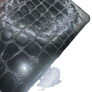Brighton Shiny Black Croc Embossed Leather Wristlet Wallet Clutch