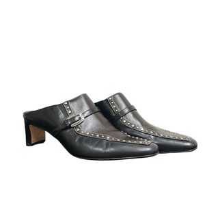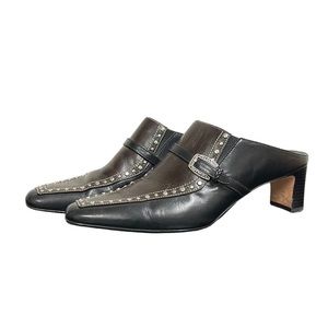 Brighton | Tempe Mules Buckle Studded Black/Chocolate Leather Heeled 8M