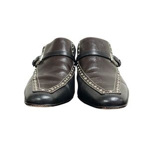 Brighton Shoes Tempe Mules Buckle Studded Black/Chocolate Leather Heeled 8M