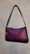 Beautiful burgundy and black design with silver-tone hardware. Features black woven leather, top zip closure, and an exterior pocket with magnetic snap. Accented with a silver-tone heart hangtag. The interior is striped and spacious. Measures approximately 12.5" x 7.5". No rips, rubbing, or stains—this bag is in excellent vintage condition.