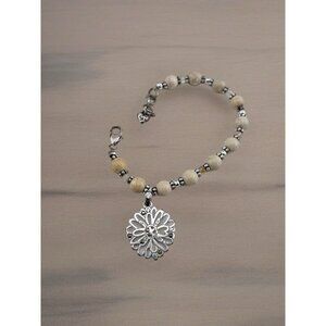 Brighton Silver Beaded Charm Bracelet Beautiful Tan Beads.