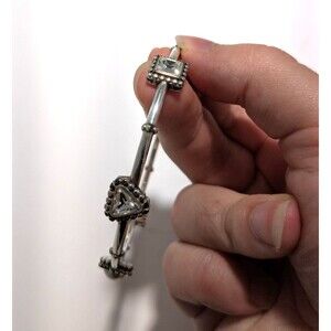 Brighton Silver Hinged Bangle Bracelet w/ Rhinestones Faux Pearls