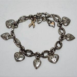 Brighton Silver Pl Charm Bracelet Hearts Faith Hope Heal Ribbon Breast Cancer