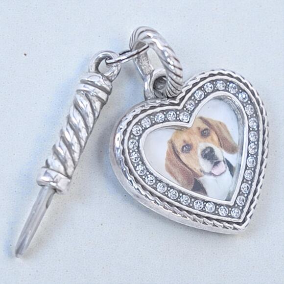 Brighton Silver Plated Heart Photo Frame Charm With Screwdriver Crystal Accent