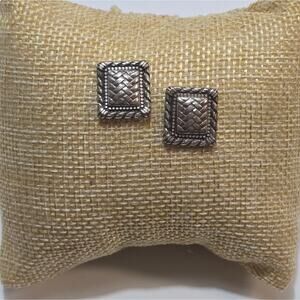 Brighton Silver Plated Large Basketweave Stud Earrings