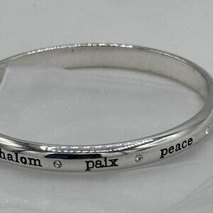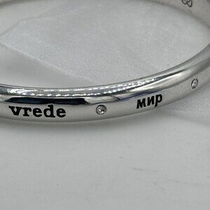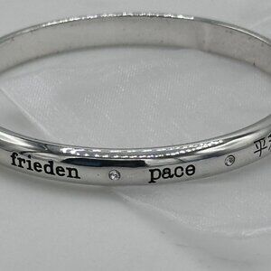 Brighton Silver Plated "Peace" Bangle Bracelet - Engraved Multilingual Design with Crystals