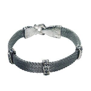 Brighton Silver Tone And Clear Rhinestone Mesh Bracelet (5936)