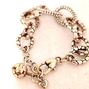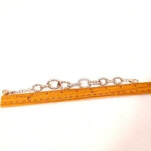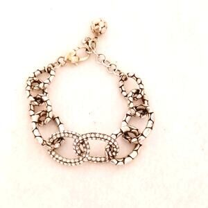 Brighton Silver Tone Chunky Rhinestone Chain Link Bracelet Heart Clasp Boho Chic