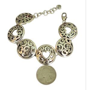 Brighton Silver Tone Circle Medallion Heart Link Bracelet 7 3/4” Long K59