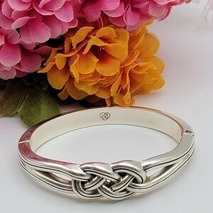 Brighton Silver Tone Double Knot Charm Hinged Bangle Bracelet Oval Clamper 6.5"