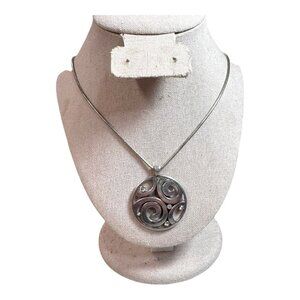 Brighton Silver Tone Swirl Reversible Pendant Necklace 18" Rhinestones CZ Boho